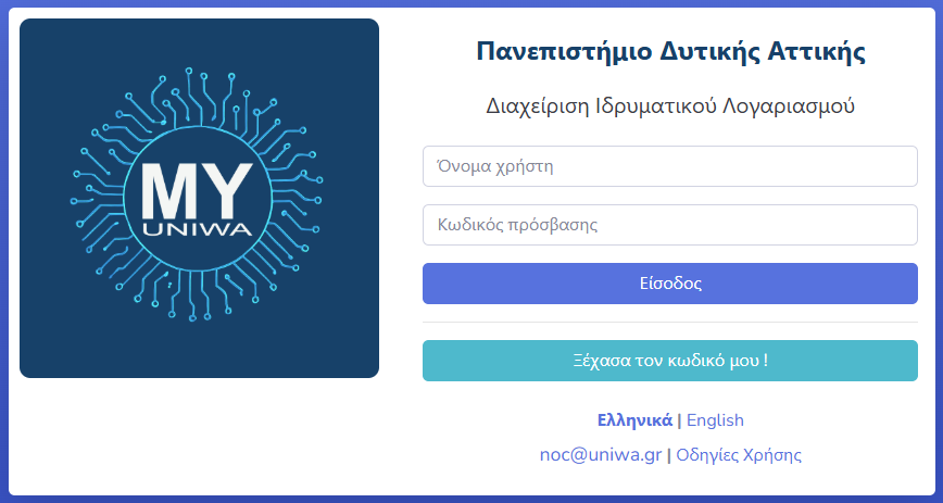 Υπηρεσία Διαχείρισης Ιδρυματικού Λογαριασμού - my.uniwa.gr