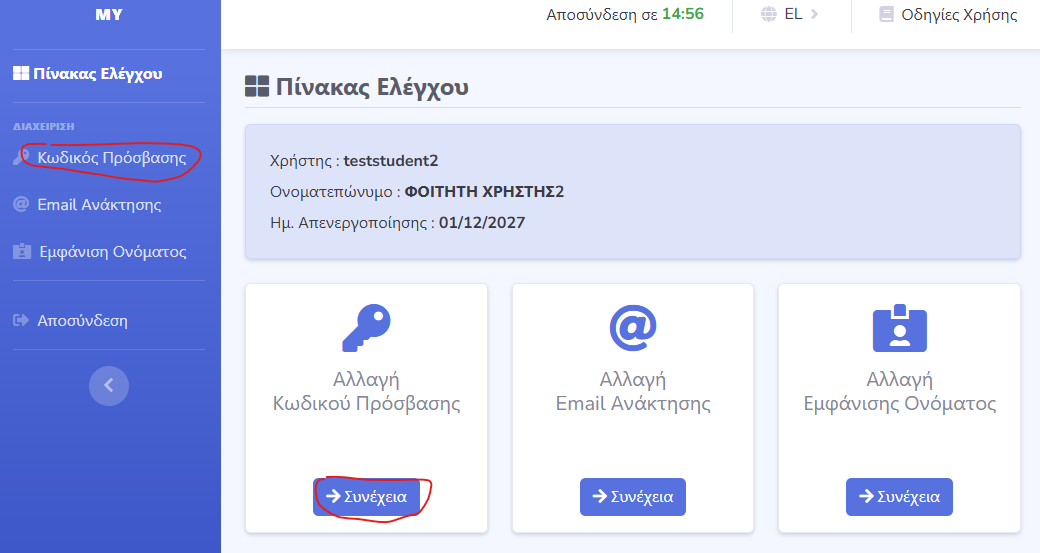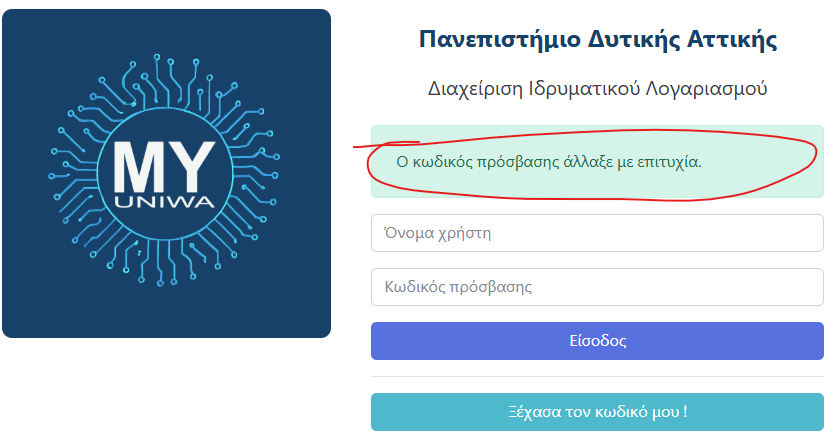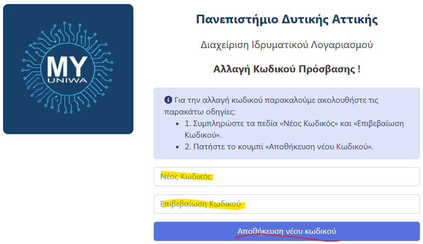 - αλλάξουν τον κωδικό του ιδρυματικού λογαριασμού τους.