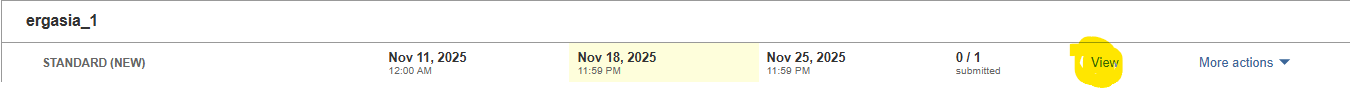 Αφού έχετε δημιουργήσει ένα ή περισσότερα αντικείμενα τύπου assignment μπορείτε πλέον να υποβάλλετε εργασίες προς έλεγχο. Κάντε κλικ στο σύνδεσμο “View”.
