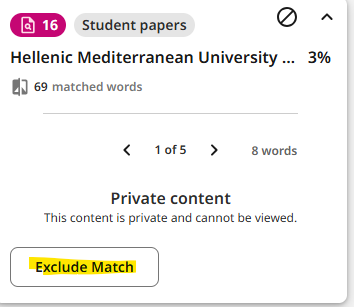 Μπορείτε να αποκλείσετε κάποιες από αυτές τις πηγές, επιλέγοντας την και πατώντας το κουμπί “Exclude Match”.